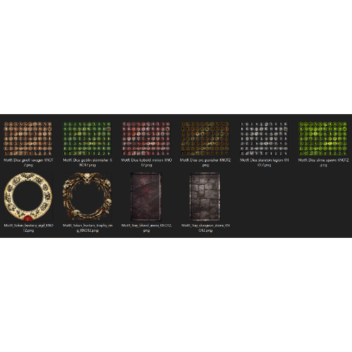 Inside, you’ll find six monster-themed dice sets, each marked with a creature icon on the 20 of every d20, alongside two rugged dice trays and two token borders inspired by trophies, stonework, and bestiary records.